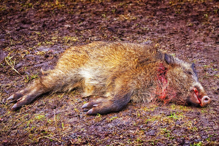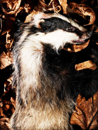 Dead badger on the road, selective focus
