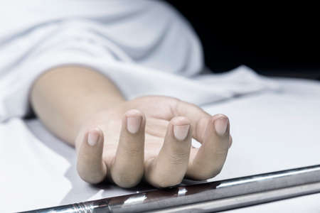 Corpse of woman in the morgue, horizontal
