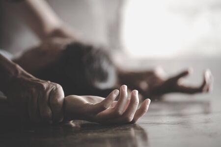 murdered woman lying on a floor - crime scene