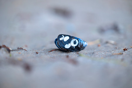 Beautiful Baltic Sea beach scenery with small shells in the sand. Sunny summer day in Latvia.