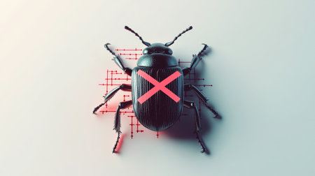 Pixelated beetle moving forward leaving digital glitch trail effect