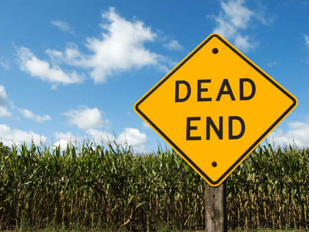 Corn field with a dead end road sign in front of it