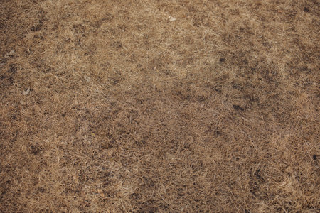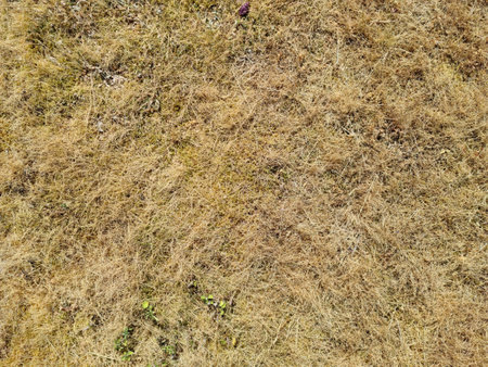 Dry texture of short clipped grass with soft shadows from a top view perspective