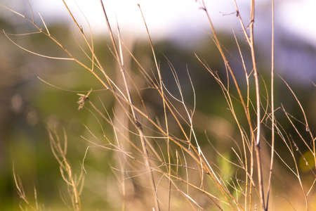 Dry spare of grass in sunset dawn. Autumn.