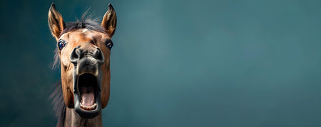 Startled horse caught in a moment of surprise during studio session. Concept Equestrian Startle, Horse Studio Surprise, Candid Equine Capture