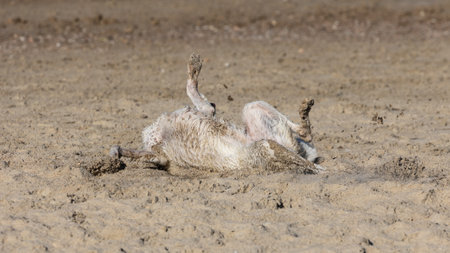 A horse rolling around in the dirt. Generative AI image.