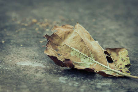 Dry leaf on the ground with copy space. Nature background.