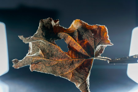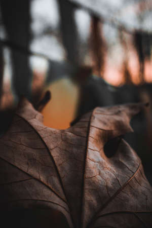 sad beautiful faded fall leaf close-up macro