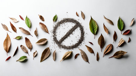 Leaves and clean air particles form a no smoking sign, highlighting the contrast between nature and pollution, promoting awareness for a healthier planet.
