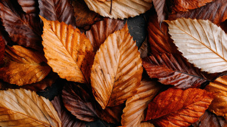 Dry leaves scattered on ground create a textured display of brown hues and natural beauty