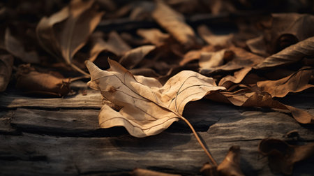 Autumn's Essence: A Beautiful Dry Leaf Resting on the Ground. Generative AI