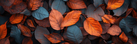 A stunning arrangement of autumn leaves in contrasting shades of orange and blue. This beautiful background showcases the intricate details and textures of nature’s seasonal changes.