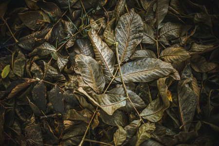 Many dry leaf on ground for background/texture.Vintage or retro tone.