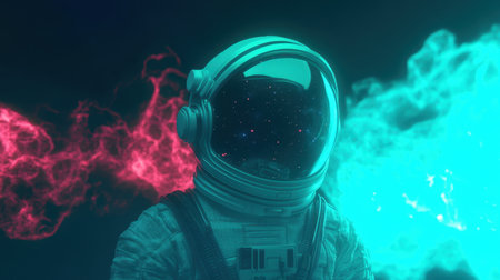 Cinematic image of an astronaut. Colorful portrait of a man with spacesuit