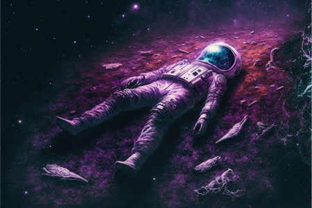 The remnants of the space traveler on a dim backdrop. Fantasy concept, Illustration painting. Generative AI