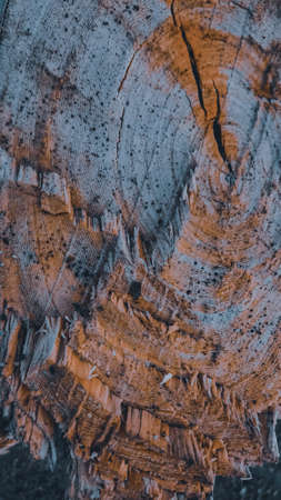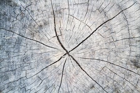 Close up cut tree trunk with old crack in the Akha village of Maejantai on the hill in Chiang Mai, Thailand. Abstract texture. Perfect background.