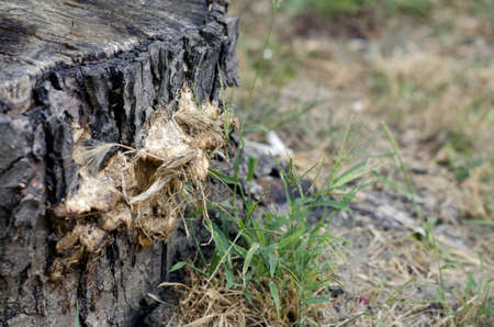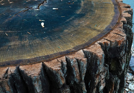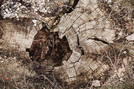 Stump of old tree . Cut old tree surface