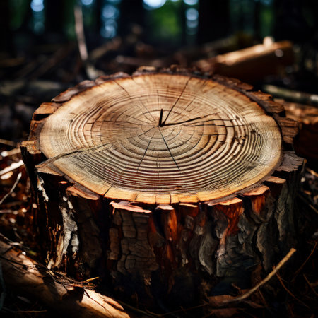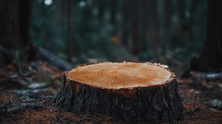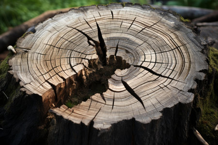 Tree stump with annual rings in a forest setting