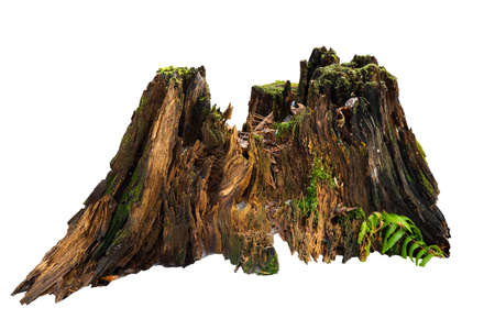Old tree stump with moss isolated on white