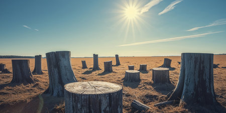 AI Generated. Stumps in a Vast Field Under Bright Lighting