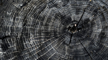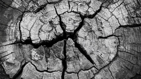 This monochromatic image captures the intricate textures and patterns of a weathered tree stump, showcasing natural beauty and organic decay.