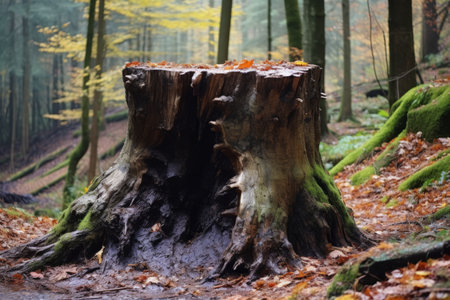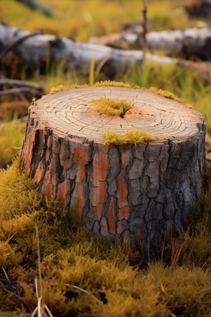 close-up of tree stump in deforested region, created with generative ai