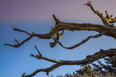 Dead tree isolated on blue sky background, Dead branches of a tree.Dry tree branch.Part of single old and dead tree on blue sky background.