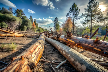logs and trunks after the forest fire