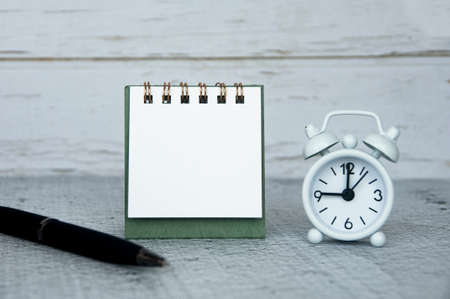 Motivation text on notepad with black alarm clock set time at 12.30 on wooden desk - It is time to start something new.
