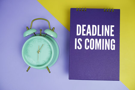 Deadline Is Coming Reminder with Mint Green Alarm Clock on Colorful Background
