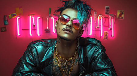 Portrait of a young punk man with punk hairstyle and sunglasses.