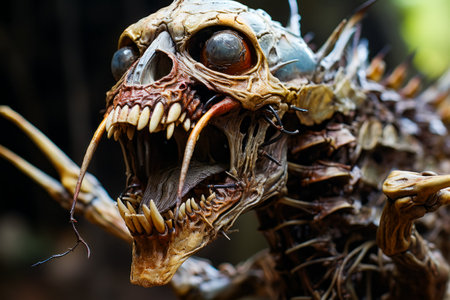 a high-resolution photo featuring a human skull, demon head, alien head, and monster head, all intricately crafted with insects. the depth of field style adds a captivating touch to the image, while the post-apocalyptic landscapes create a haunting atmosphere. this vfxfriday masterpiece emphasizes emotion over realism, making it a perfect representation of the crowcore aesthetic. ai generated