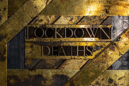 Lockdown Deaths text message on textured grunge copper and vintage gold background
