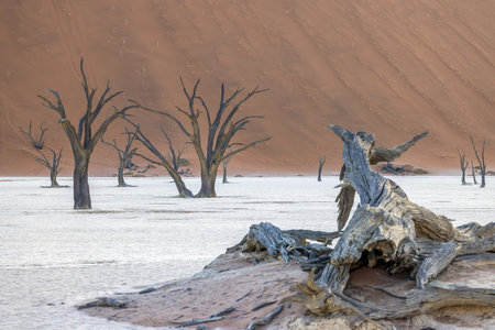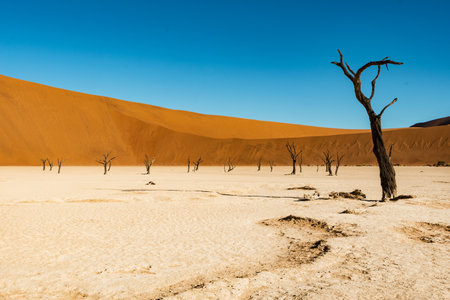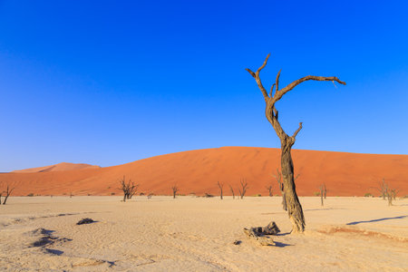 Dead Vlei landscape with dry acacia in Namib desert, valley Sossusvlei, Namibia Africa wilderness