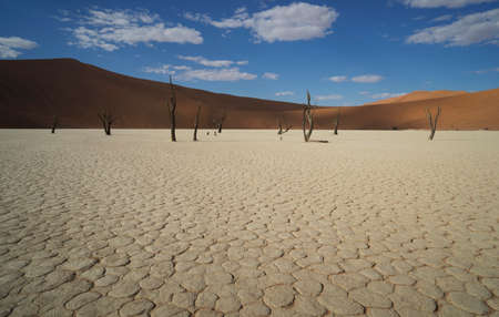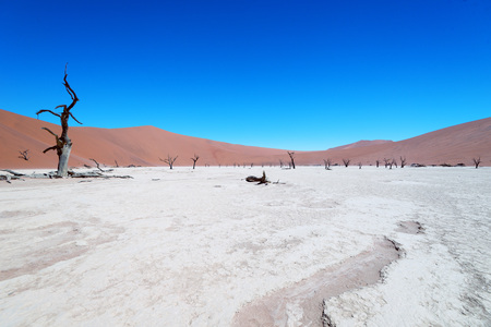 Dead trees and dry mud in the Sossusvlei desert, Namibia