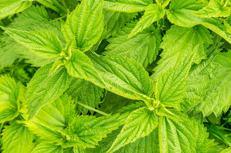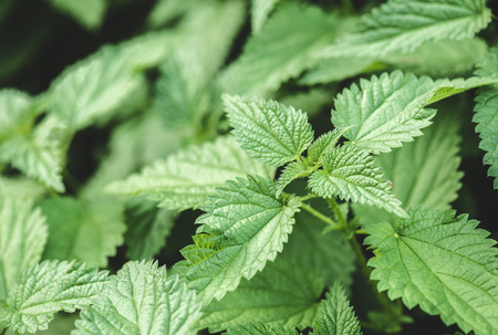 Fresh nettle leaves. Thickets of nettles. Medicinal plant. Green leaves background.