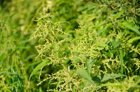 Urtica dioica, often called common nettle, or stinging nettle, or nettle leaf. Nettle flowers