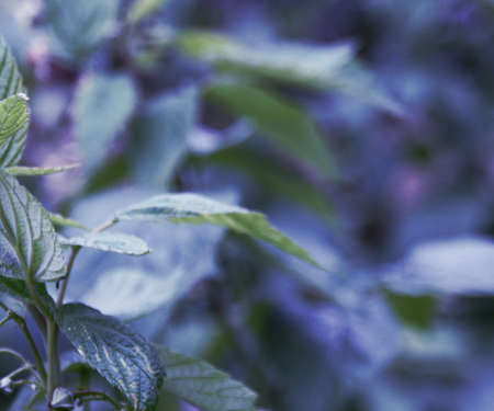 background mint bush openwork and long, green leaves close-up spring design, spicy herbs
