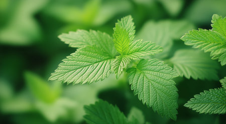 green nettle foliage. green leaf texture. nature floral background. Organic botanical beauty macro closeup.