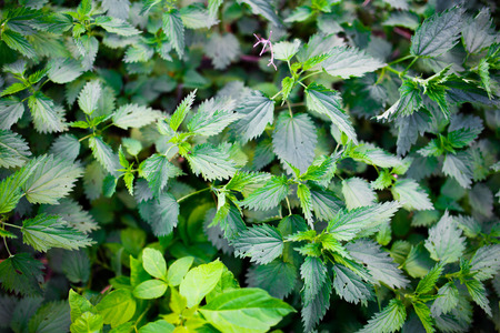 Bush of stinging-nettles. Nettle leaves. Top view.