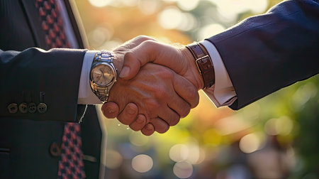 A close-up view of two hands shaking, representing a business agreement. The image symbolizes trust, partnership, and collaboration in a professional setting, highlighting the importance of successful negotiations and teamwork.