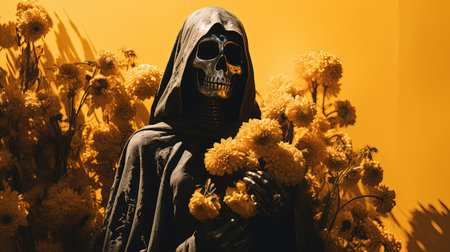halloween death creepy skeleton night hood horror evil fear ghost. Generative AI.