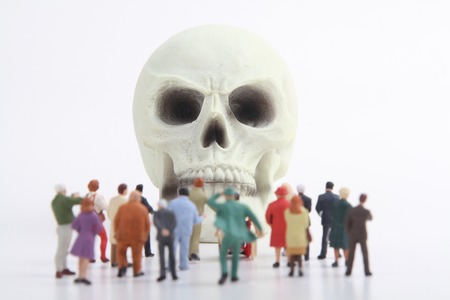 miniature figurines crowd of people and skull