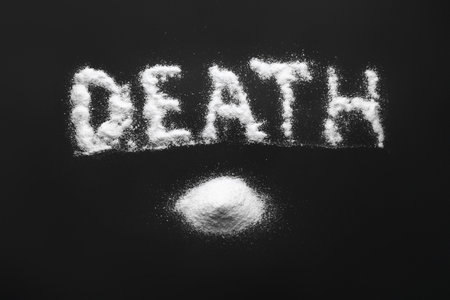 Word DEATH made of salt on dark background