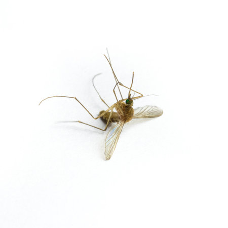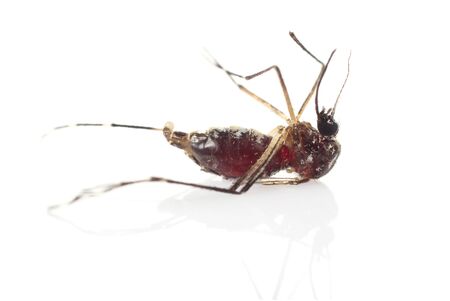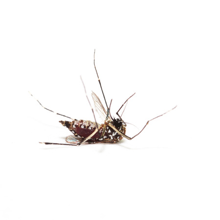 Isolated dead infectious mosquito, transmitting diseases. White background subject on focus.
