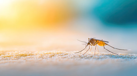 A mosquito sitting on yellow wall indoor. Extreme close-up.
