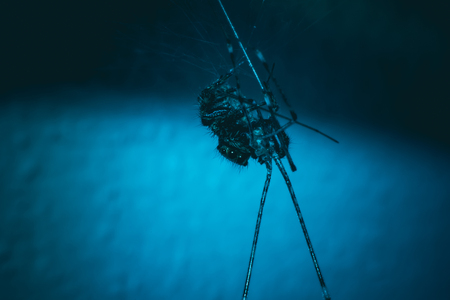 Mosquito full of blood on a black background. Close-up macro shot of an insect