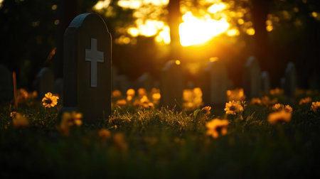 Grave flowers in a cemetery