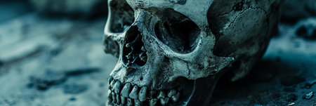 Concept of life and death. Skull close-up