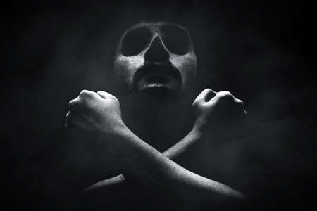 Scary halloween concept. Scary man in a dark room with lights